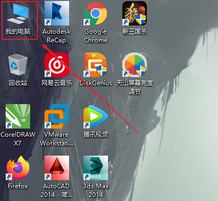 1.选择桌面上的PC,单击鼠标右键。