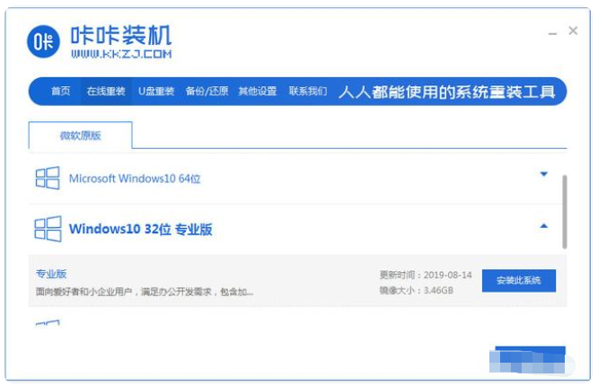 借助咔咔装机工具在线一键重装系统: