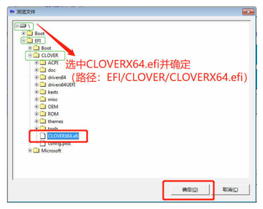 3)完成后打开分区工具,找到U盘(如果检测不到重新插拔一下U盘,可能会提示格式化U盘,不要管他),打开U盘上的EFI分区(引导分区),删除EFI文件夹,将适合自己电脑EFI文件夹使用快捷键粘贴进去,然后拷贝CLOVER驱动文件。路径:EFI/EFI/