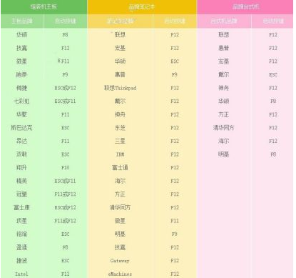 2.设置电脑从U盘启动(常见的方法有两种):第一种:开机画面出现立刻按“快捷键”然后选择U盘启动(以下表格可供参考,适用绝大部分机型)。
