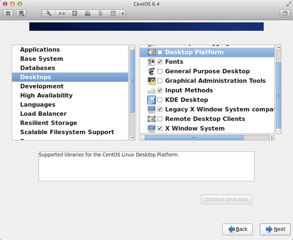 15、之后取消“Applications”、“Base System”、“Servers”中的所有选项。并且将“Desktops”中的“Desktop Debugging and Performance Tools”、“Desktop Platform”、“Remote Desktop Clients”取消。而在“Input Methods”除了“ibus-pinyin-1.3.8-1.el6.x86_64”,其余的全部取消。