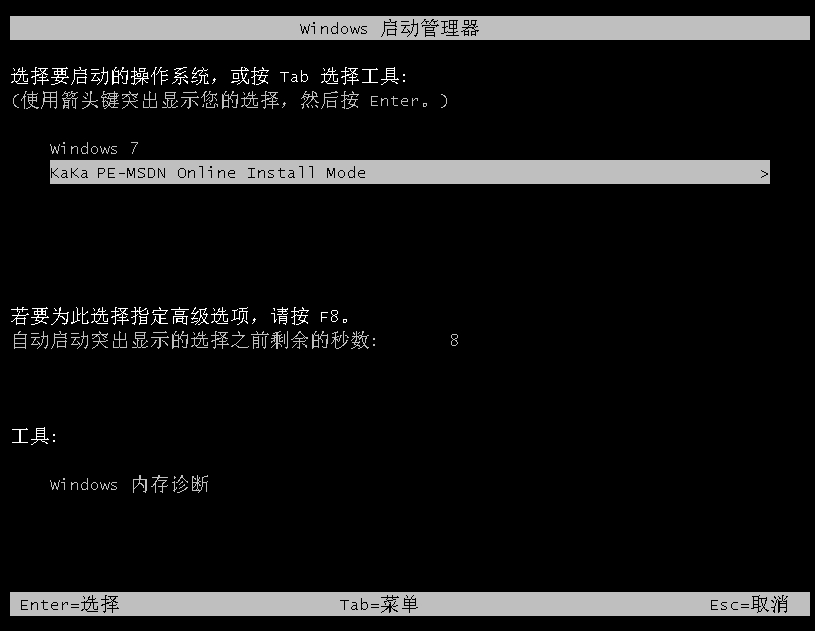 3、来到启动管理界面后选择kaka pe-msdn项进入pe内。