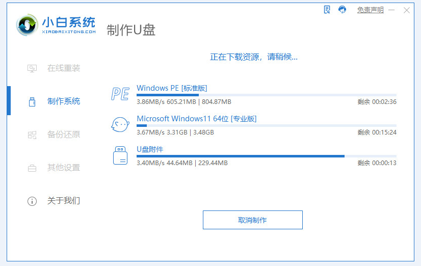 1、下载并安装小白一键重装系统软件。双击打开软件,插入空白u盘,选择制作系统中的制作U盘,点击开始制作。