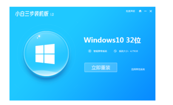 1、下载并打开小白三步装机版软件,选择立即重装即可。