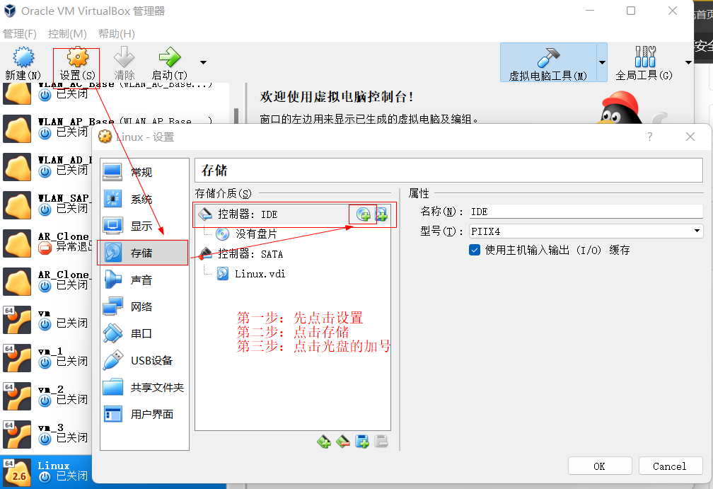 4.6:在开机之前 需要先放入我们前面下载好的ios的镜像 按照图片说的操作来即可。