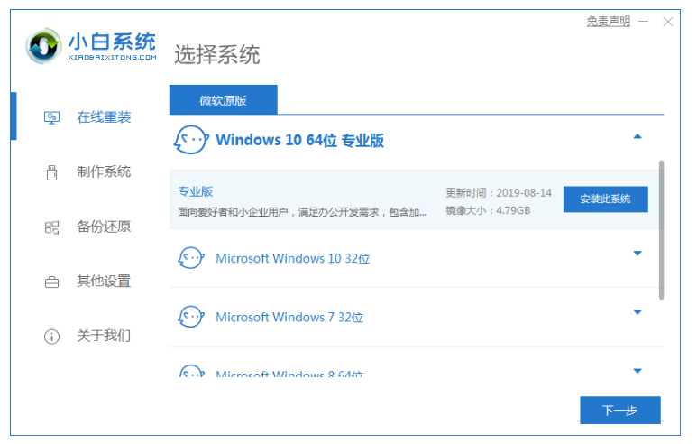1、下载双击打开小白一键重装系统工具,选择需要重装的系统版本,单击【安装此系统】。