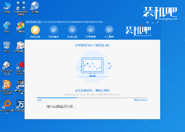 5、进入pe系统之后,装机吧装机工具将会自动开始安装win7系统。