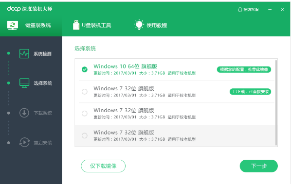 以上就是我们使用深度一键重装系统软件进行在线重装系统的方式,希望对你有所帮助
