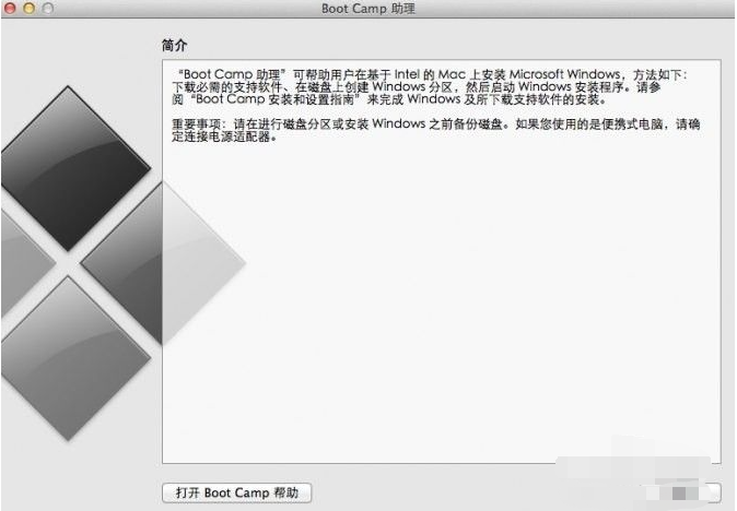 4、插入Windows 安装U盘或者光盘到电脑,再次启动Boot Camp助理,选择安装Windows 7 或者更高版本。