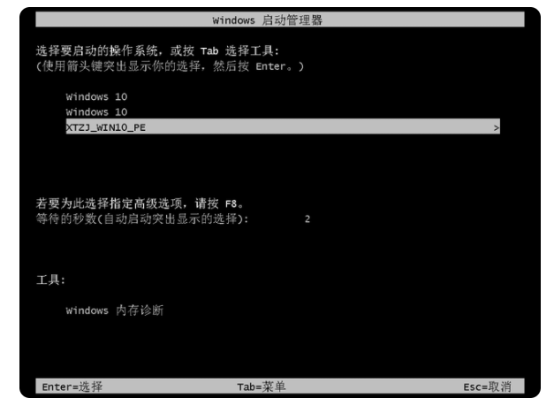 6、选择【XTZJ_WIN10_PE】回车。