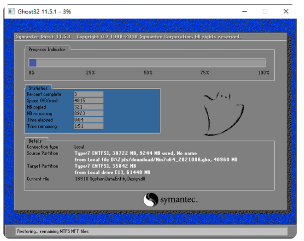 8、系统备份完成后,将会再次重启,自动进入系统安装界面即可。
