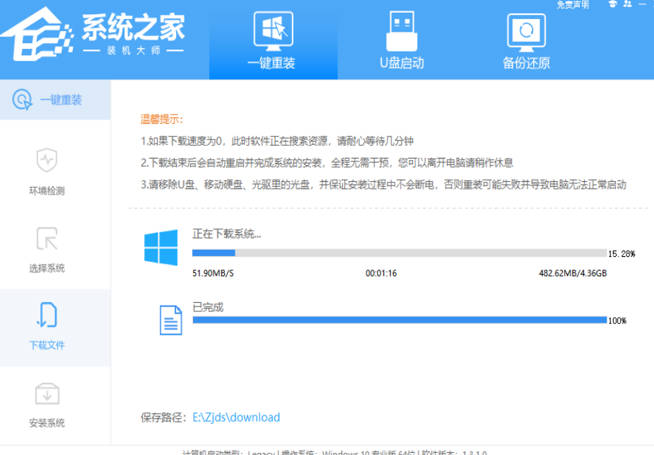 3、下载完成后,系统会自动重启系统。
