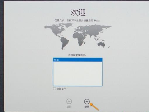 12、安装完成后会自动重启,点击继续进行mac系统配置即可。