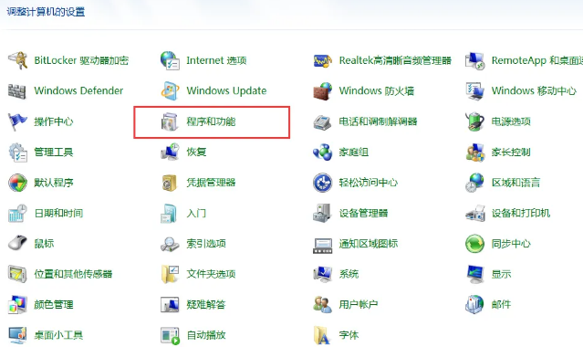2、打开控制面板后,点击程序和功能选项。
