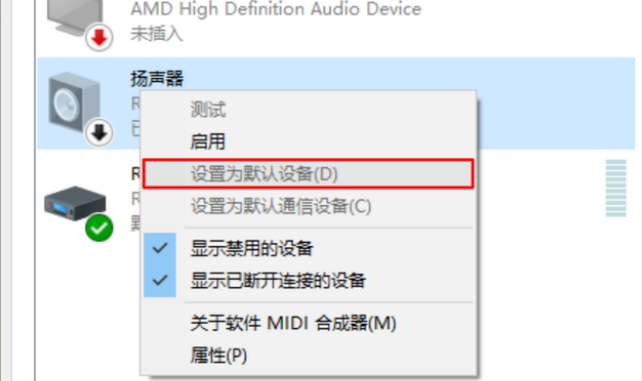 2、选择合适的设备当作默认的设备。