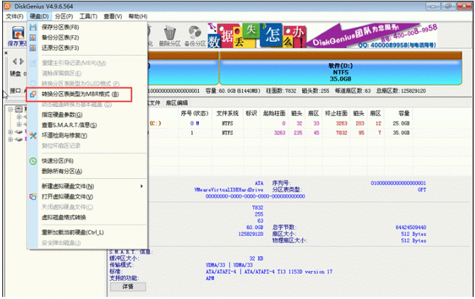 5、点击打开分区工具,点击上面的【硬盘】,选择【转换分区表类型为mbr格式】,进行快速分区操作,如果已经完成分区的话,将系统盘格式化就可以啦。