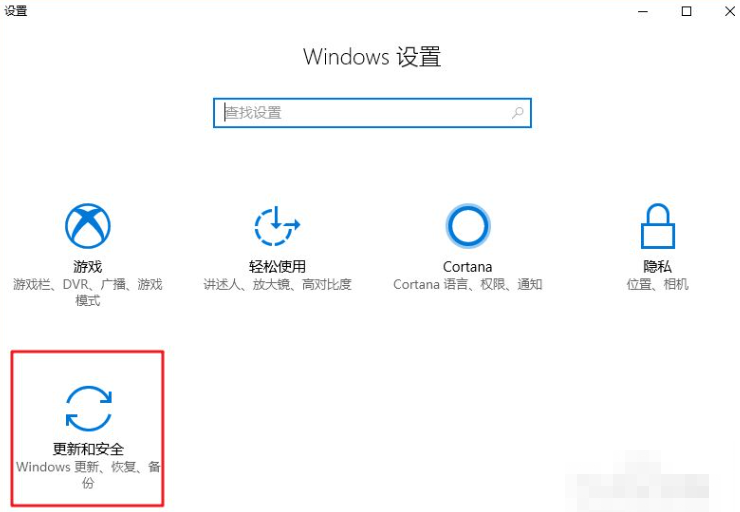 1、按下键盘win+I组合键打开设置界面,在里面点击【更新和安全】。