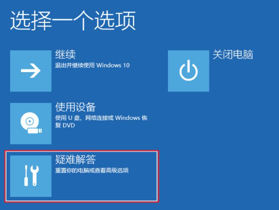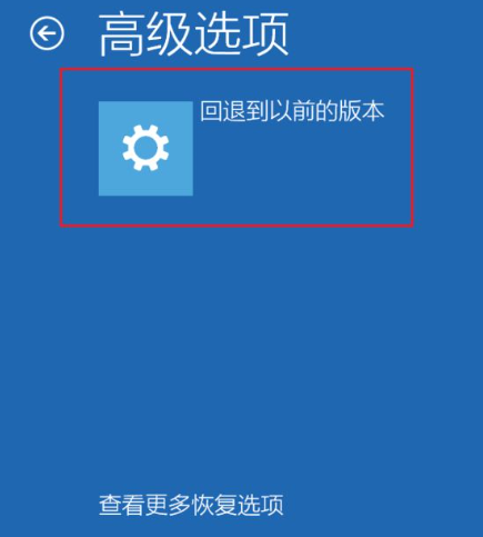 3、进入选择一个选项页面后,依次点击【疑难解答】-【高级选项】-【查看更多恢复选项】-【回退到以前的版本】。