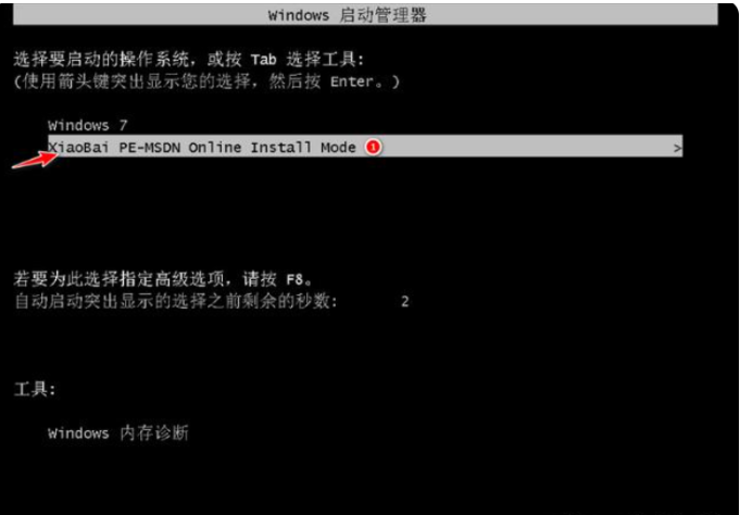 4、电脑重启之后选择进入xiaobai-pe系统。