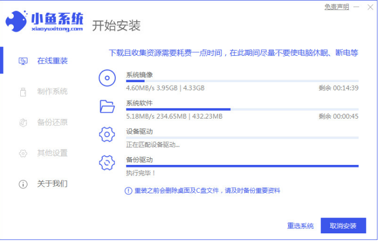 通过小鱼一键重装系统以此完成安装新系统。