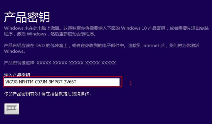 7、输入密钥:VK7JG-NPHTM-C97JM-9MPGT-3V66T ,然后 下一步。