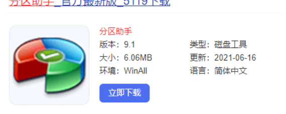 1、下载安装分区助手软件。