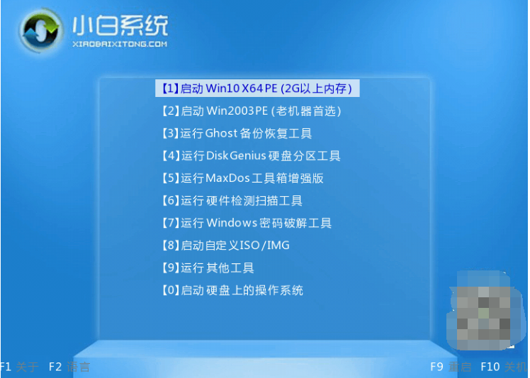 4、然后就可以使用u盘启动电脑,选择第一项pe系统进入了。