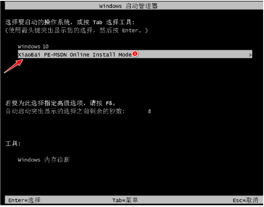 3、然后我们下载完成后重启电脑选择第二项选项小白pe进入pe系统内。