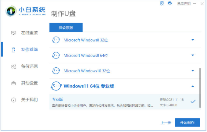 2、选择需要安装的win11系统点击开始制作。