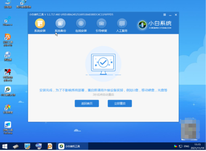 7、等提示安装完成后,选择重启电脑。