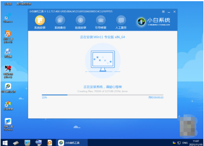 6、进入pe系统之后打开小白装机工具,选择win11系统开始安装到系统c盘。