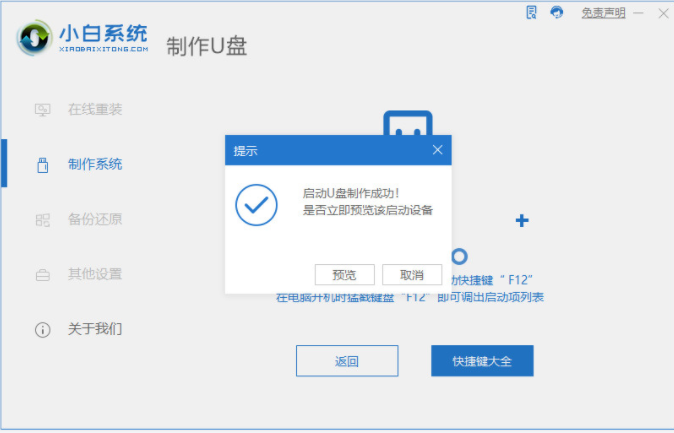 3、等待软件自动开始制作u盘启动盘,完成后先查看需要安装的电脑的启动快捷键是多少,再拔出u盘退出。