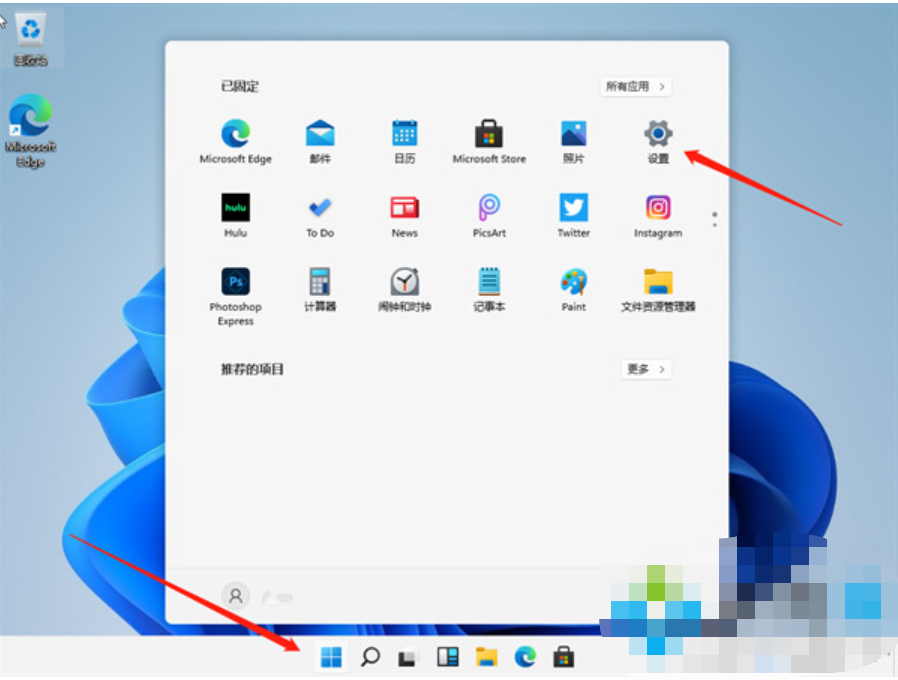 1、点击【开始菜单】,然后点击【设置】;