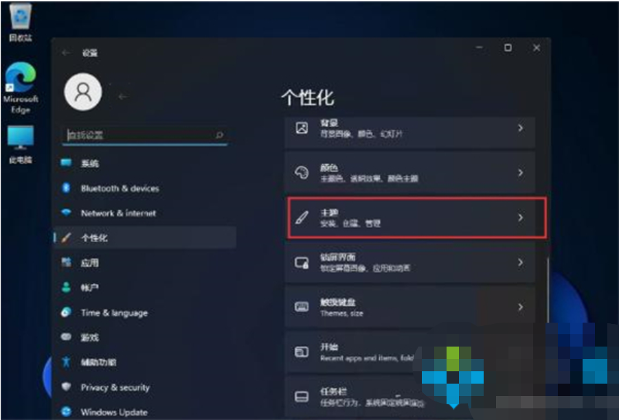 2、进入到个性化的菜单中,选择【主题】功能;