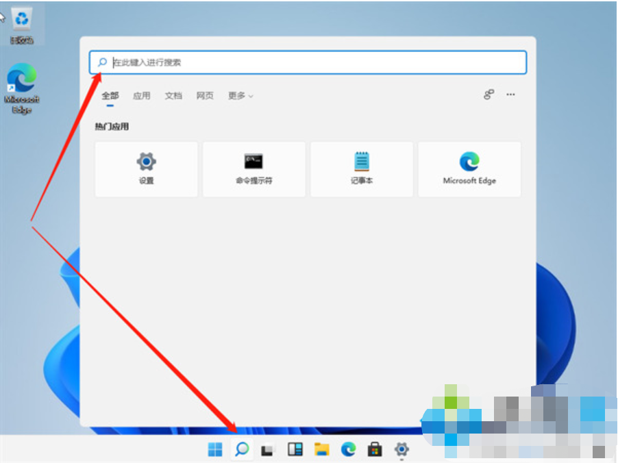 1、在任务栏中点击【搜索】;