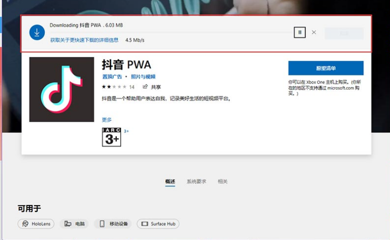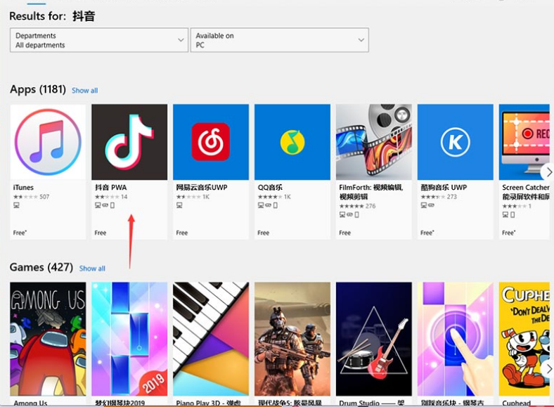 3、在搜索出来的应用界面中,找到抖音pwa并点击。