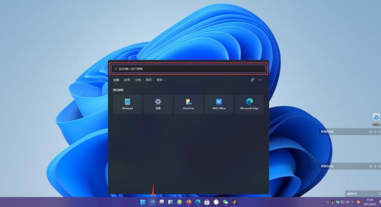 1、win11正式版首先点击win11桌面上的搜索按钮。
