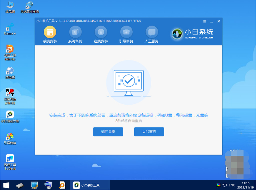 6、安装完成后便重启电脑。