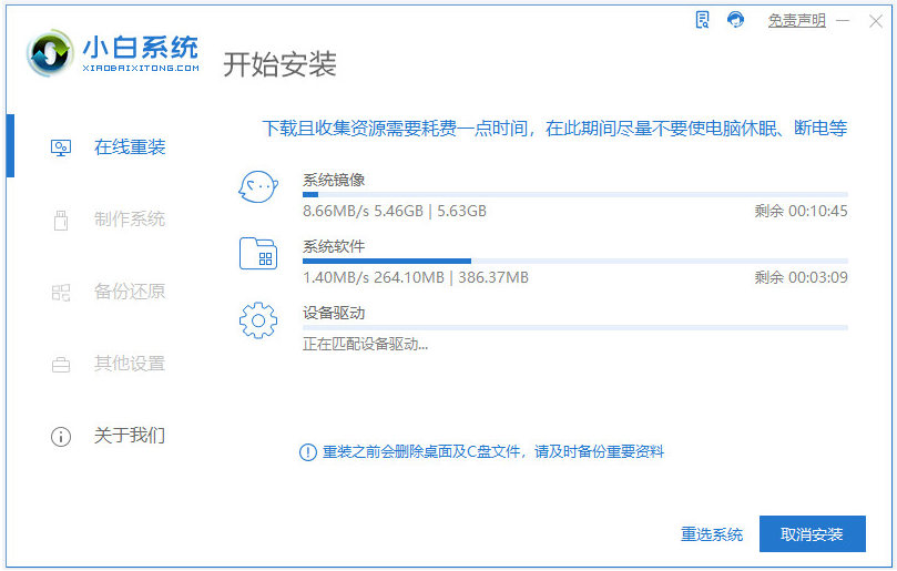 2、软件开始下载系统镜像文件资料等。